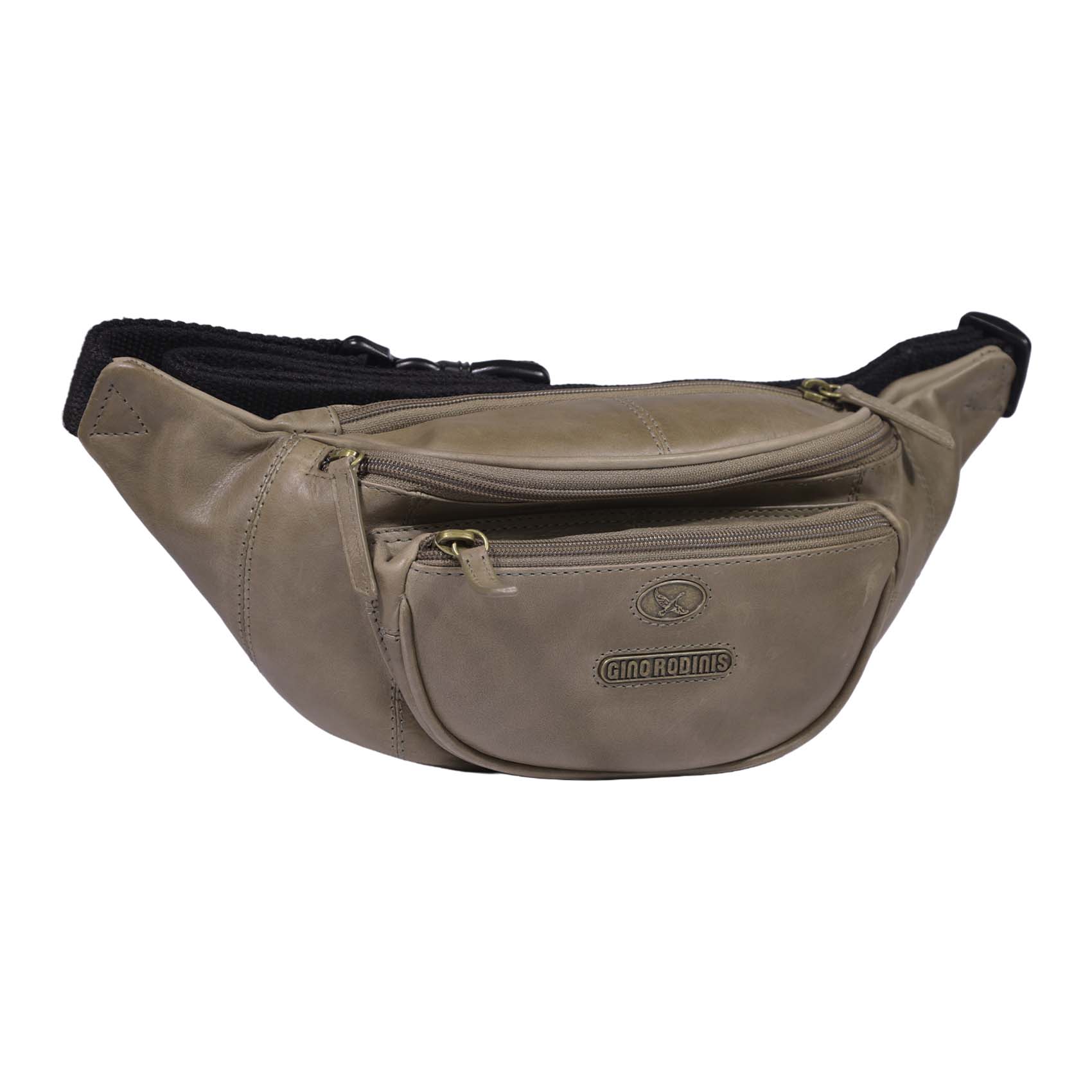 Banano de cuero con diseño italiano. Sofisticado y funcional, con bolsillos con cierre y correa ajustable para mayor comodidad.