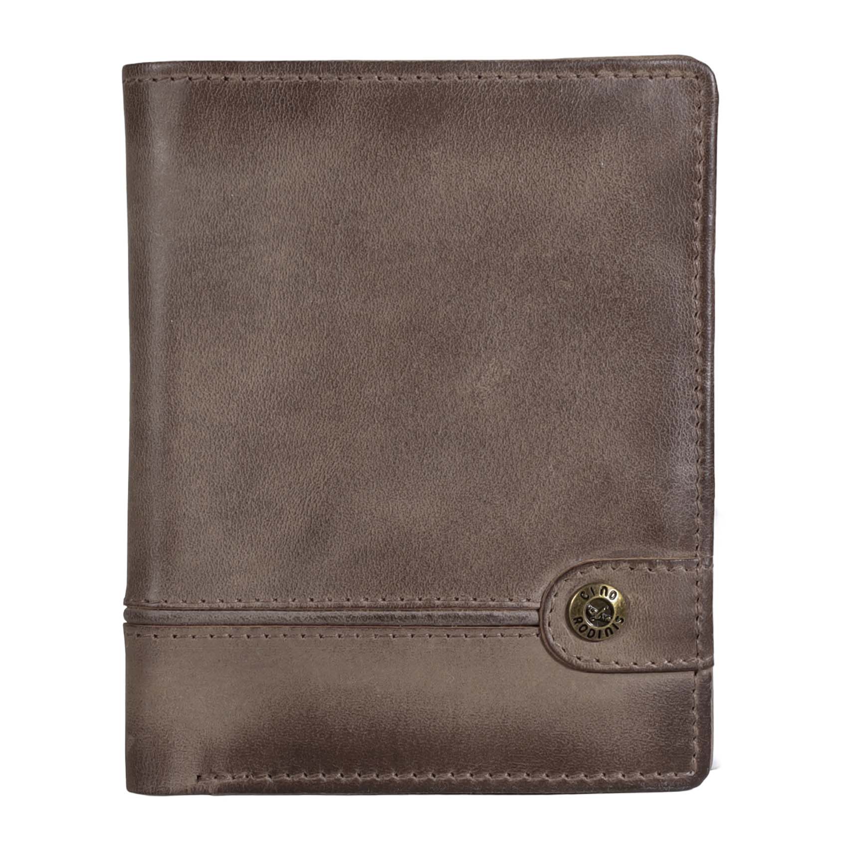 BILLETERA DE CUERO VERTICAL, CON BROCHE DE PRESIÓN Y MICA PORTAFOTOS