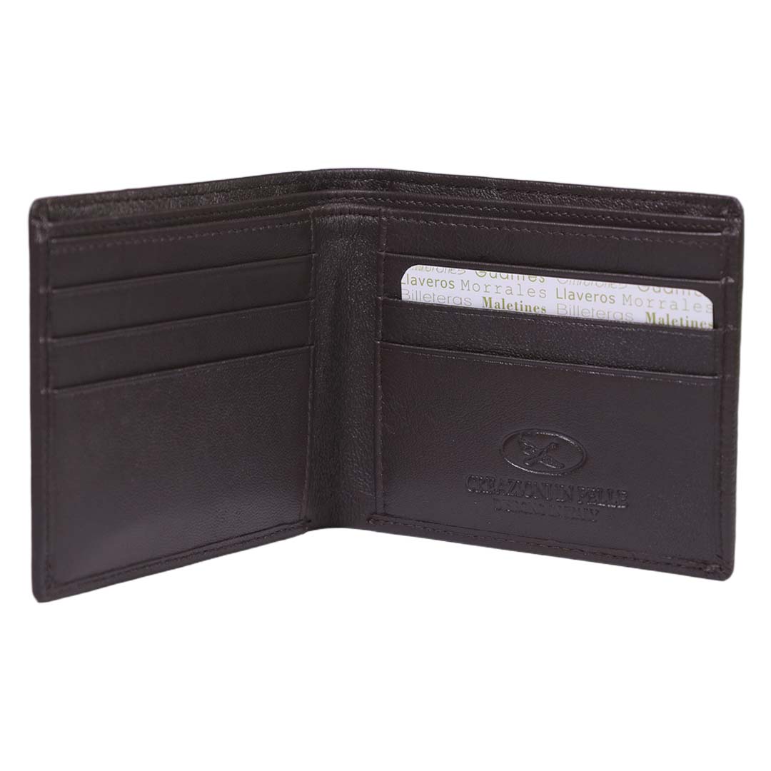 - Billetera confeccionada 100% en cuero.