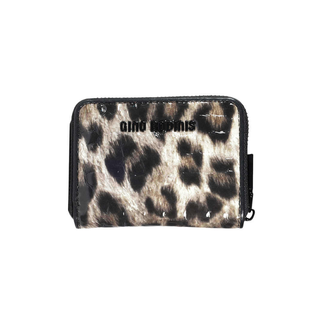 - Billetera de Mujer confeccionada con cuero estampado estilo animal print y terminación de lacado brillante.