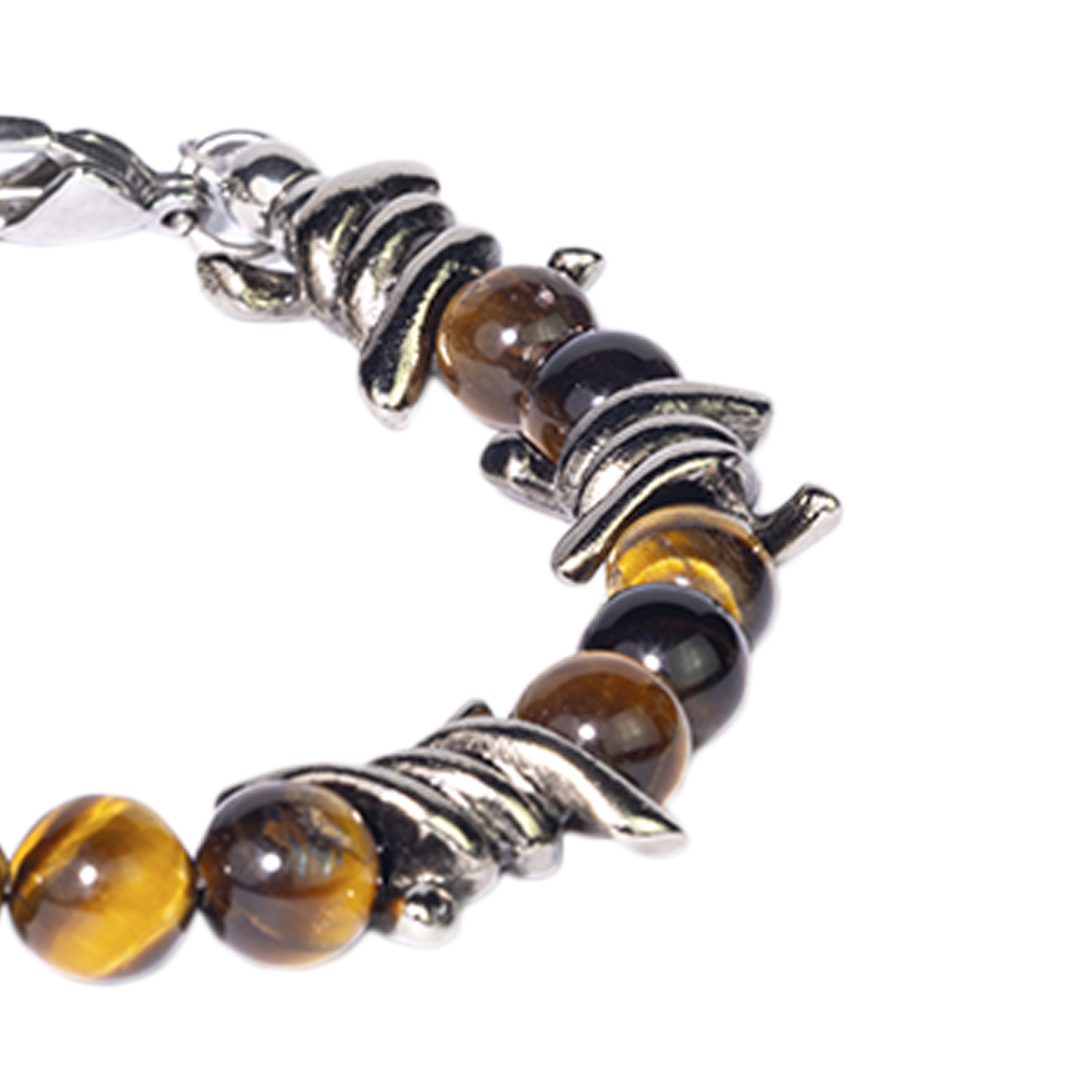 BRAZALETE DE PIEDRAS OJO DE TIGRE CON DETALLES METÁLICOS, DESTACANDO POR SU CARÁCTER Y PERSONALIDAD EN CADA MOMENTO.