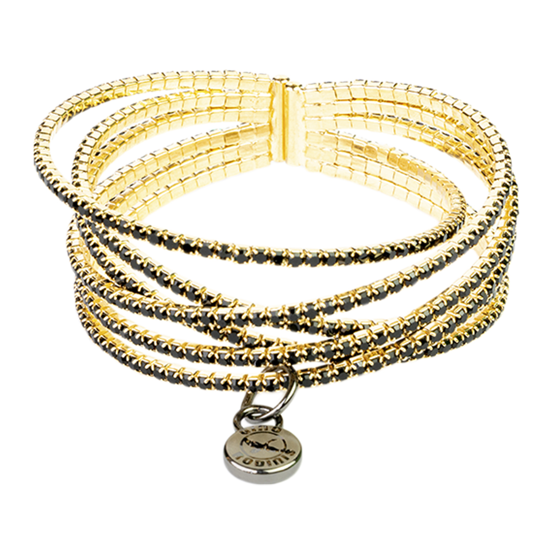• Brazalete metálico compuesto de 6 cintas metálicas recubierta de estrás.
