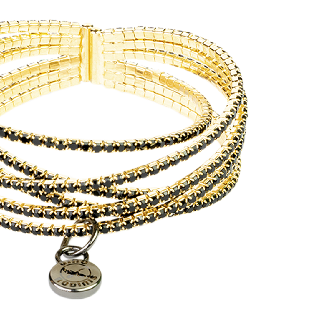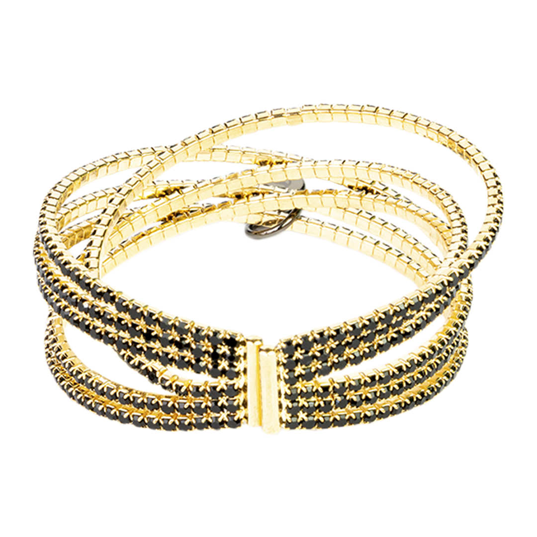 BRAZALETE METÁLICO DE SEIS CINTAS RECUBIERTAS DE ESTRÁS FLEXIBLE Y AJUSTABLE DE DISEÑO BRILLANTE QUE APORTA ELEGANCIA Y PRESENCIA.