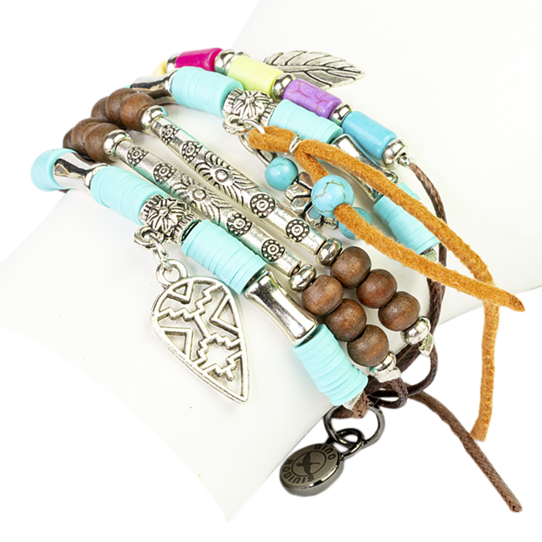- Brazalete formado por un conjunto de cuerdas con múltiples accesorios decorativos.