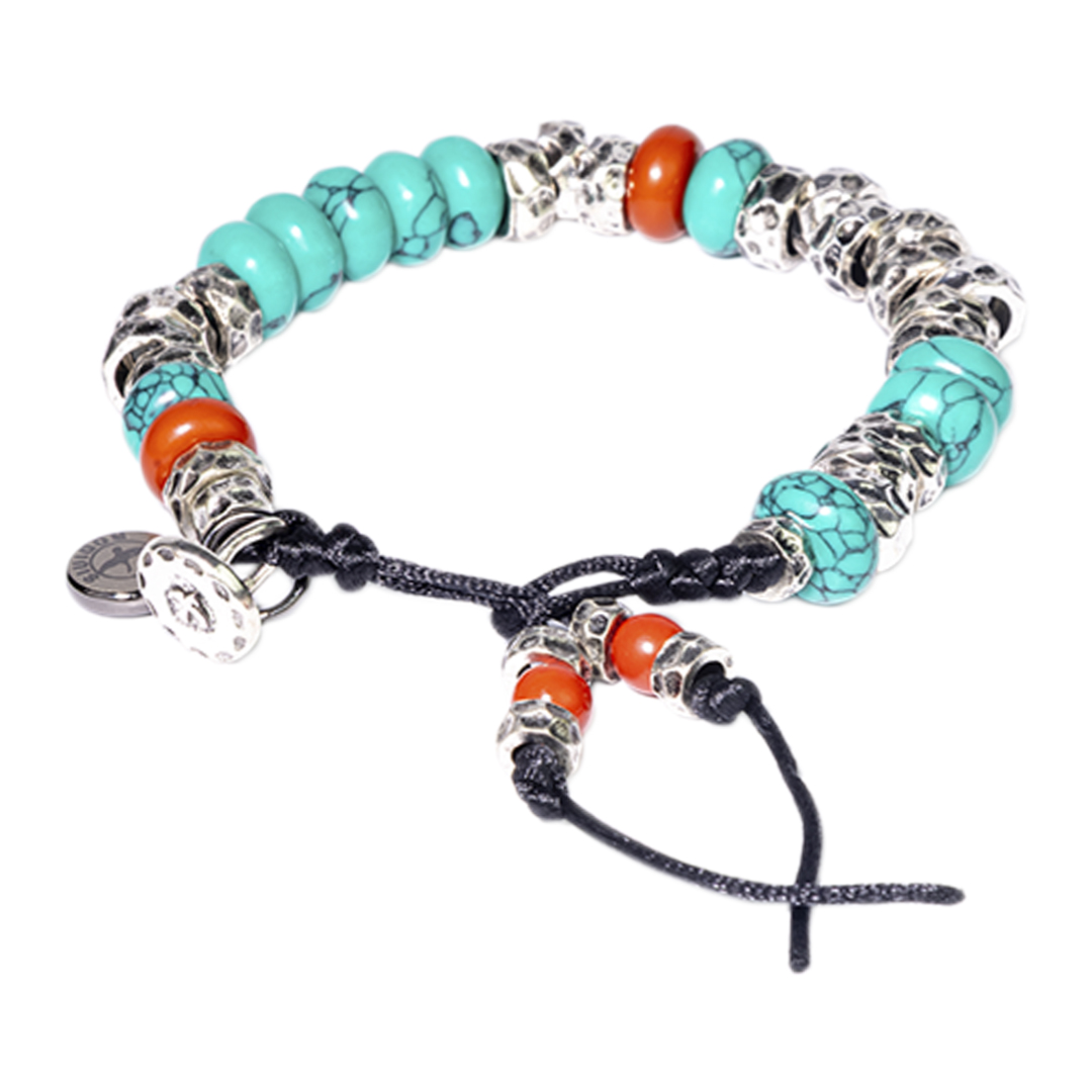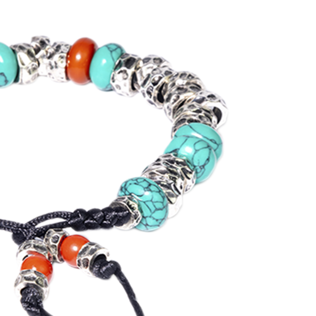 PULSERA DE PIEDRAS TIPO TURQUESA CON ARGOLLAS EN PLATA BRILLANTE Y CIERRE TIPO OJAL DE DISEÑO ELEGANTE QUE COMPLEMENTA TU ESTILO.