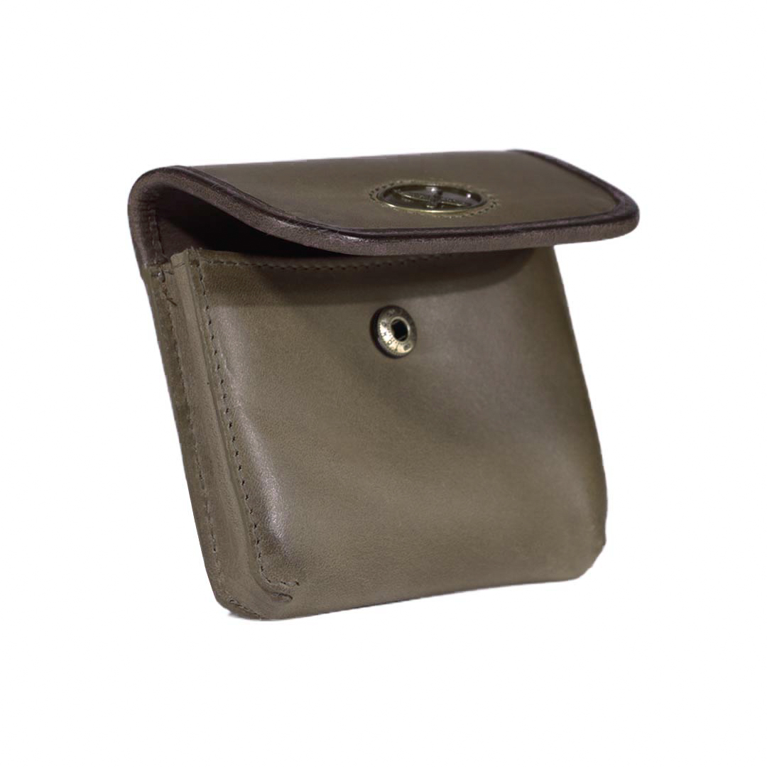 MONEDERO DE CUERO ENVEJECIDO CON BROCHE METÁLICO Y TELA INTERIOR REPELENTE AL AGUA.