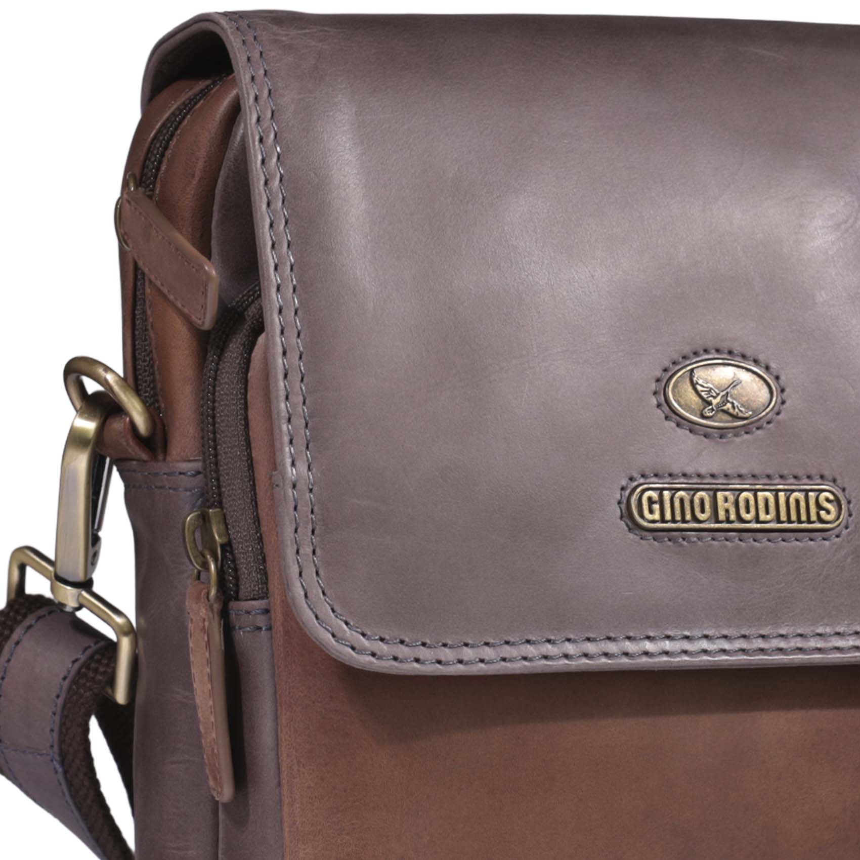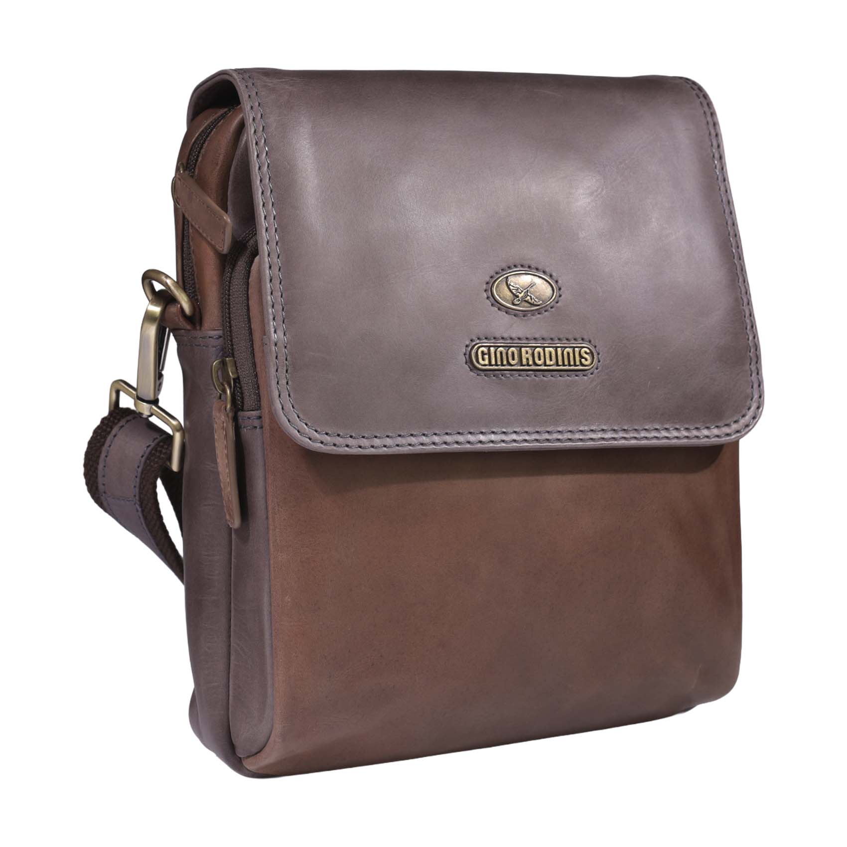 Etiquetas accesorios de cuero, gino rodinis, moda italiana, morral de cuero, Morrales
