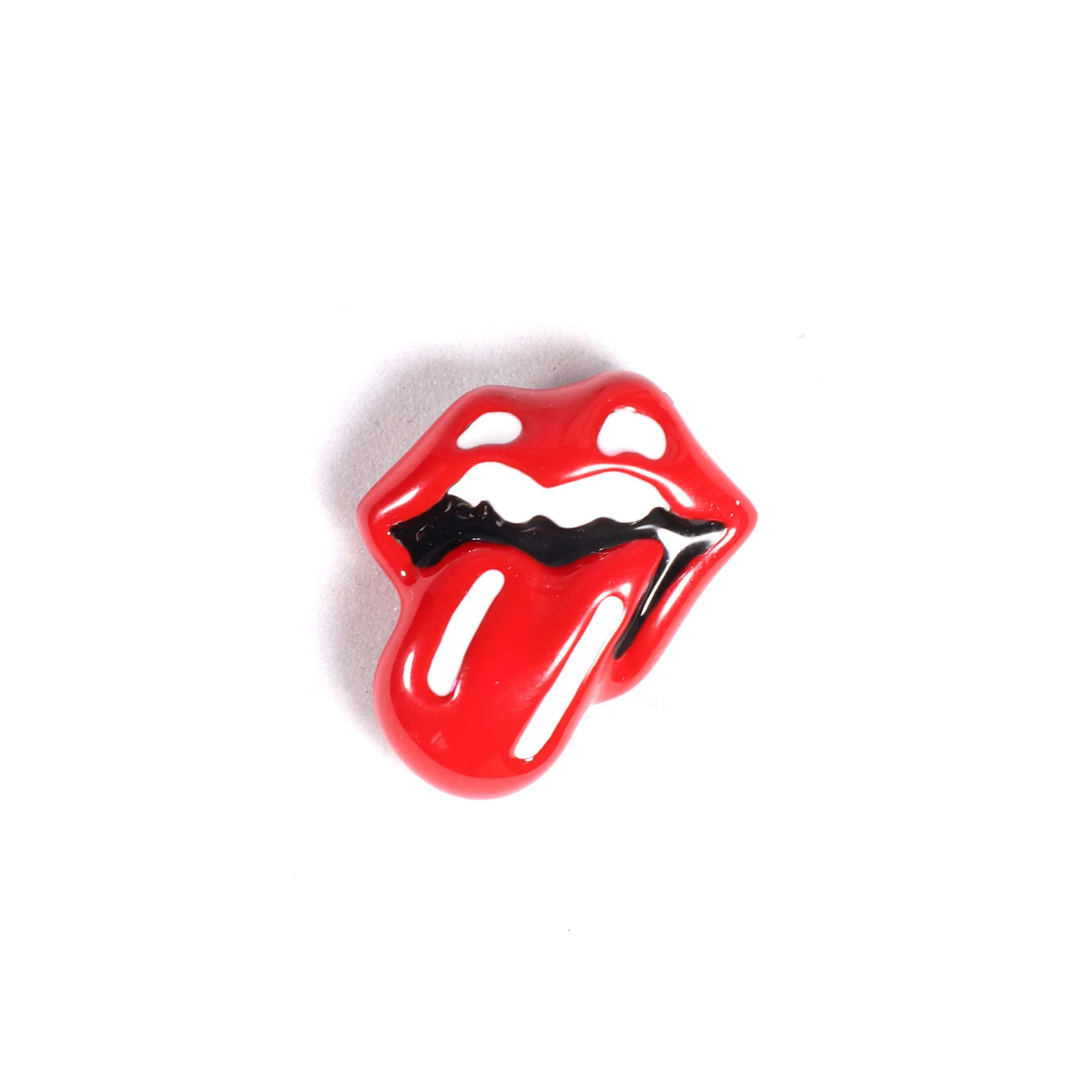 - Pin metálico, con el símbolo del rock, lengua de “Los Stone” en tres dimensiones