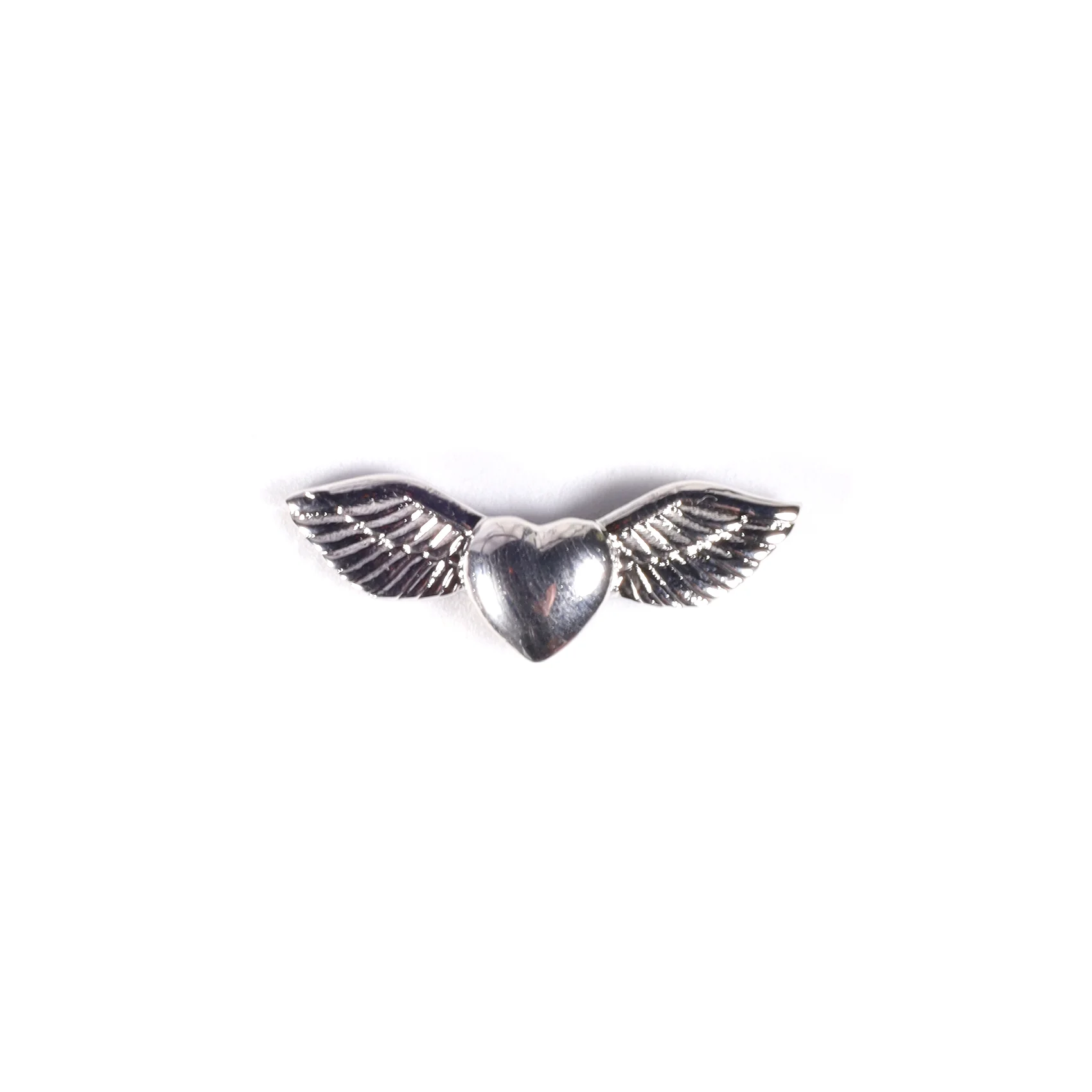 PIN METÁLICO, TRIDIMENSIONAL DE CORAZÓN CON ALAS ESMALTADO EN COLOR PLATA