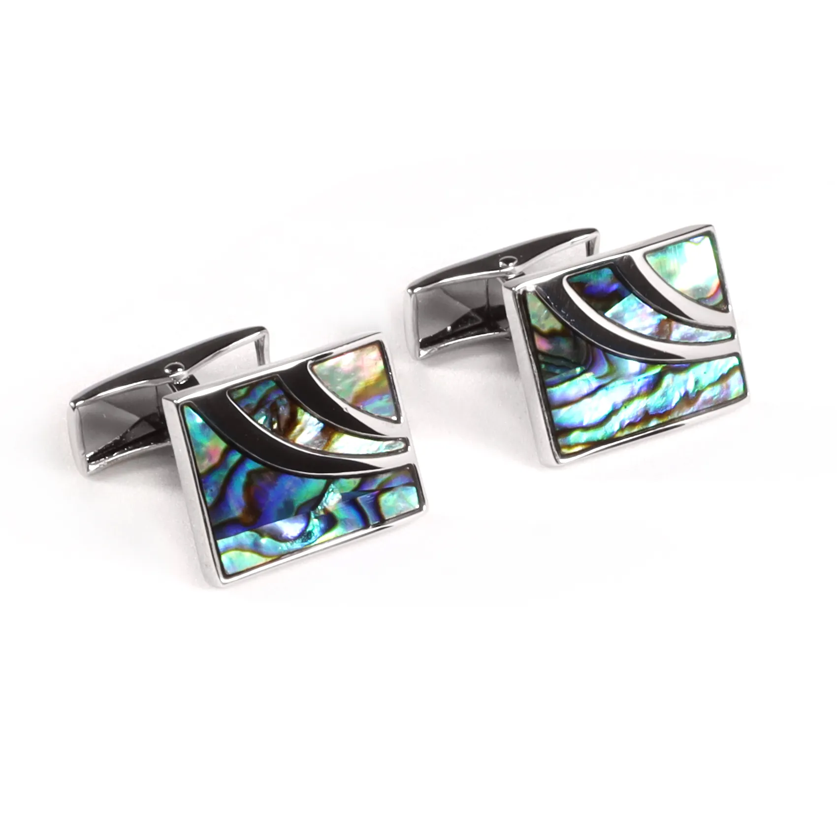 Bases metálicas plateadas, con aplicaciones de nácar y esmaltado negro. - Incluye una sofisticada caja dura, con logotipo estampado, interior acolchado.Presentación: Estuche de papel couche de color negro, con logo en sobre relieve