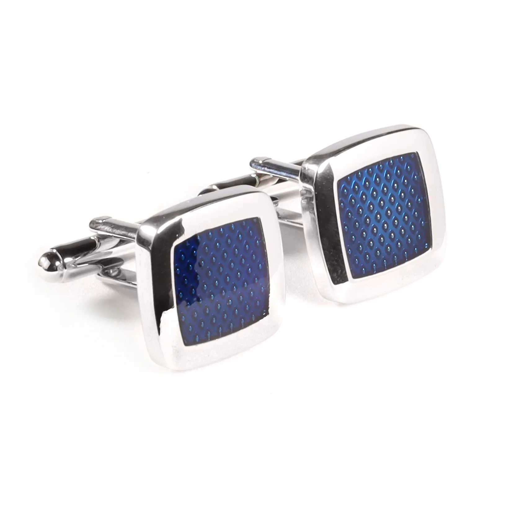 SET DE COLLERAS Y PASADOR, DISEÑO PLATEADO CON CENTRO GRAVILLADO EN COLOR AZUL REY